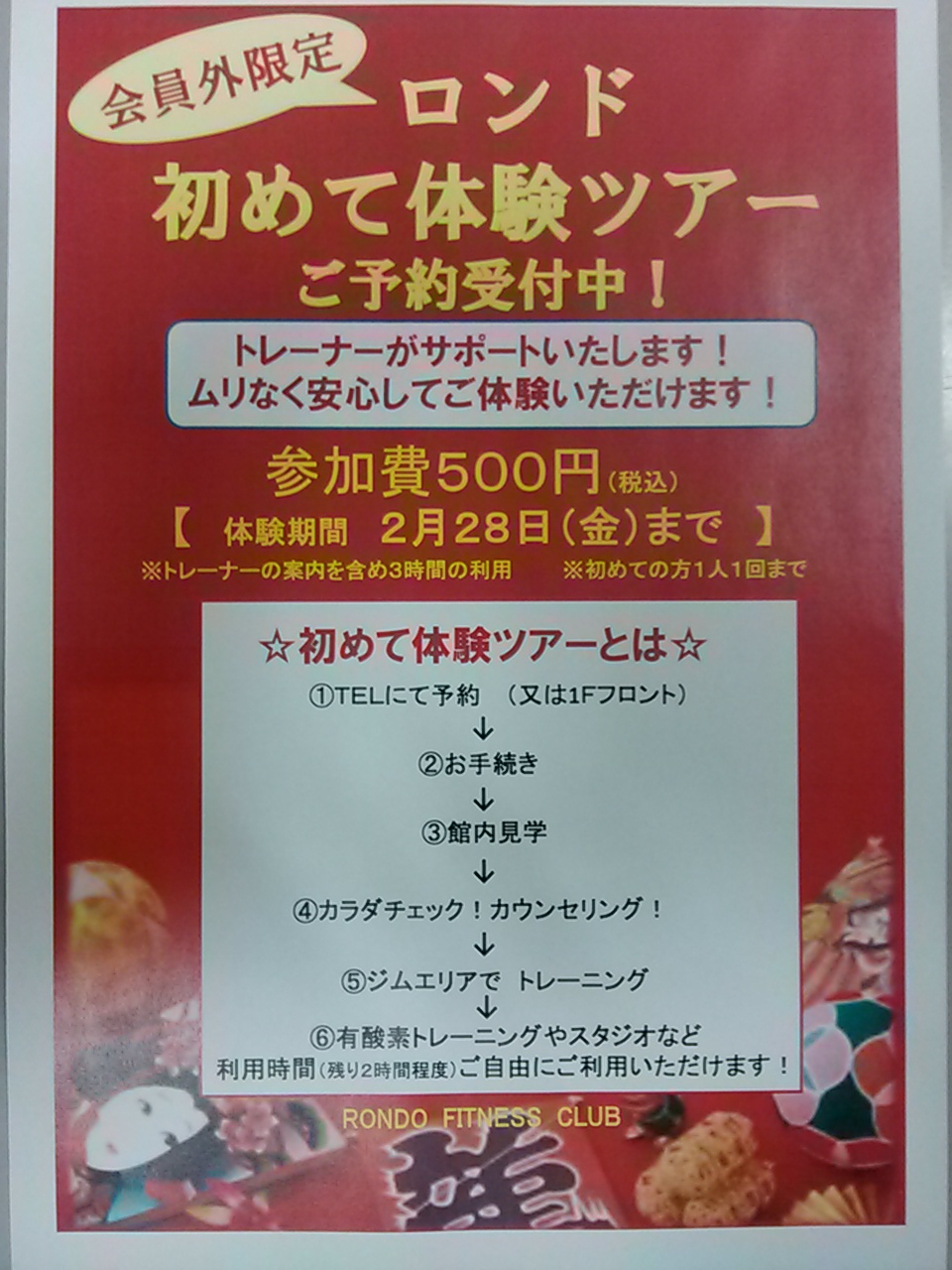 フィットネスクラブでも現在、「初めて体験ツアー」という体験を実施しております↓