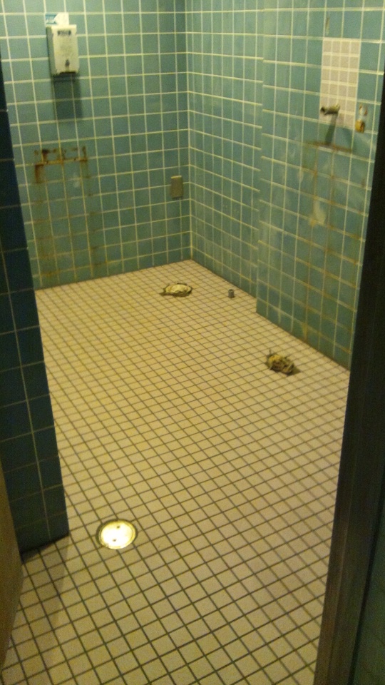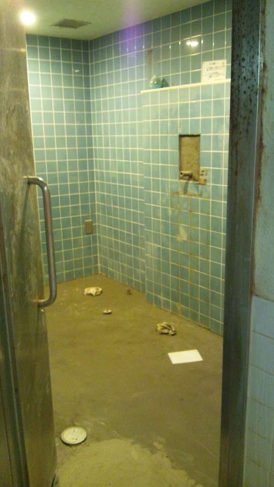 ←14日日夜から作業しております。1Fプールサイドトイレです。