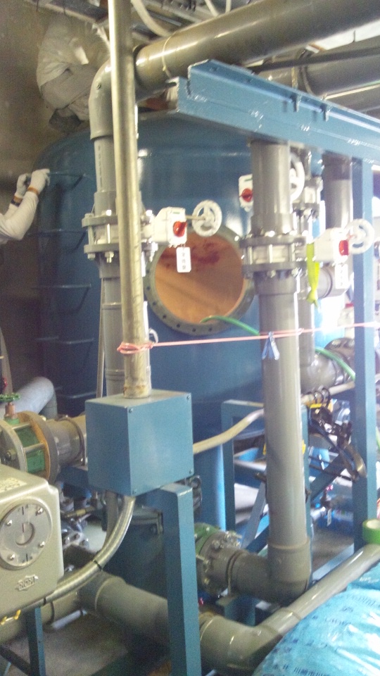←ろ材の交換等の作業を行っております。