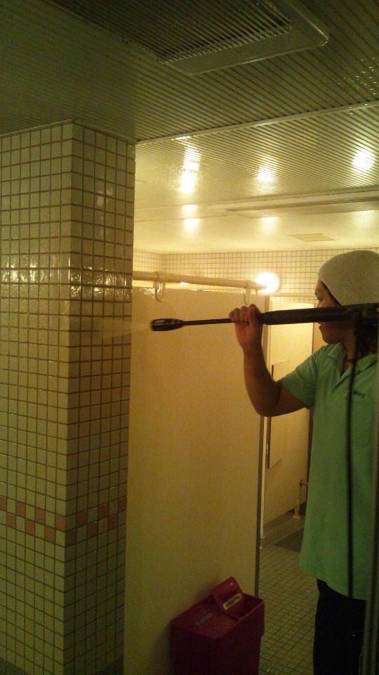 本日は、シャワールームの壁面の清掃・除菌も行いました↓