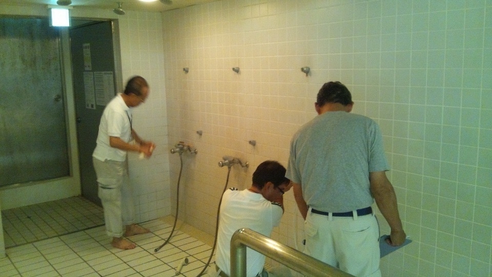 全館にありますシャワーすべてを一台一台チェックしていきます。