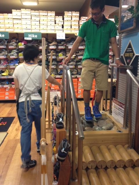 試着して靴の感覚を確認しているとは、、、本格的です。