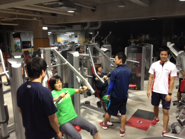 おや?営業終了後なのにジムトレーナーが集まって何か話をしております