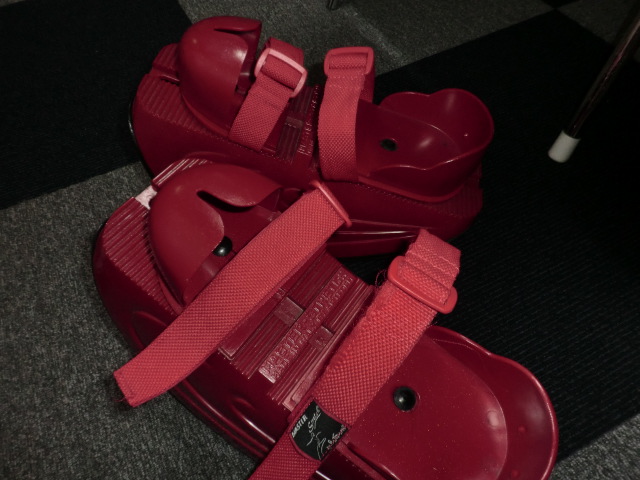 この靴+下駄?(こんな表現でスミマセン)の器具を履いてストレッチをおこないます。