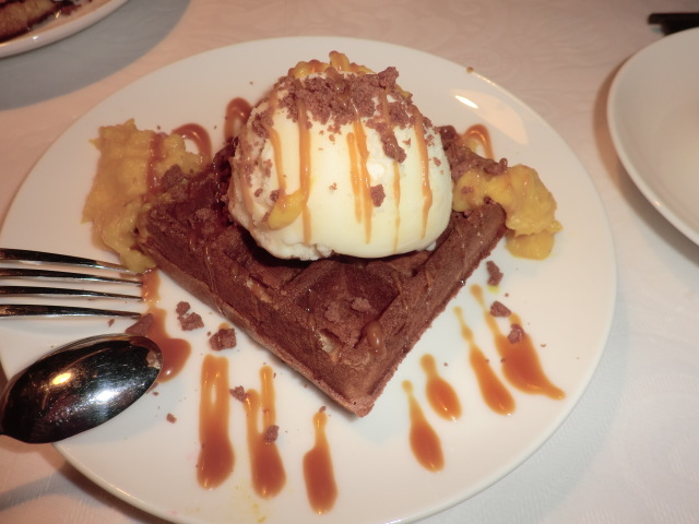 ワッフルの上に好きなアイスクリームを乗せてくれて、好きなだけ食べて