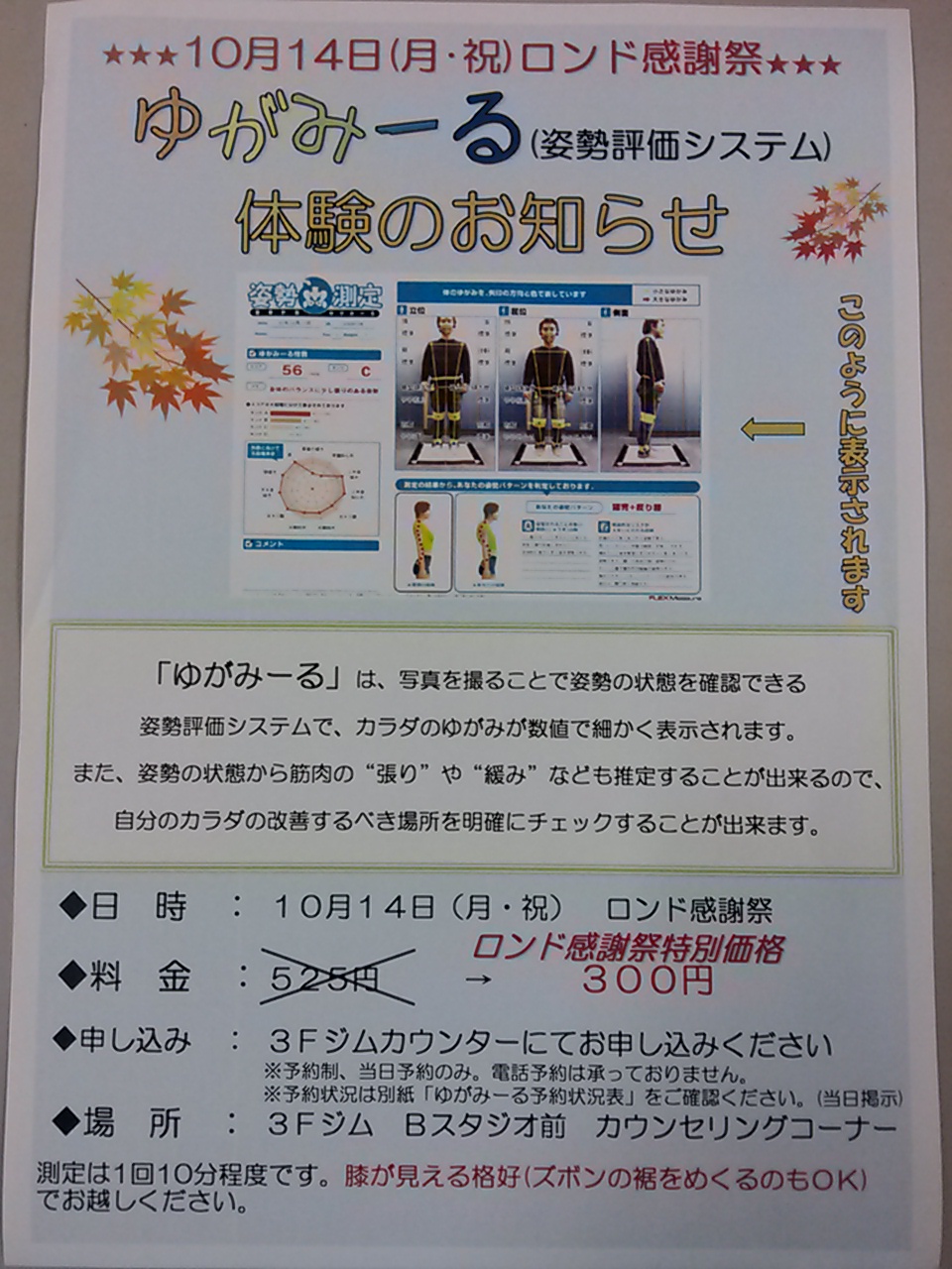 感謝祭特別価格300円で測定できます。