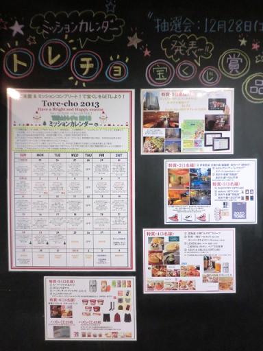 宝くじの賞品とミッションカレンダー、こんな感じで掲示しております