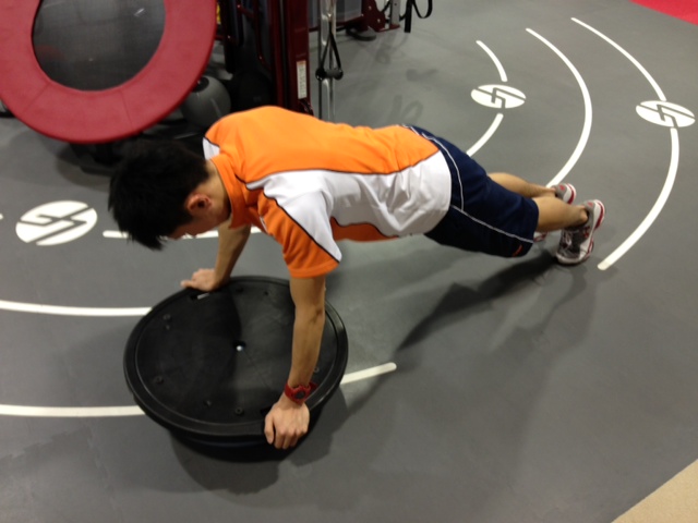 どれも不安定な状態を作っての腕立て伏せです。より体幹にかかる負荷が増します。