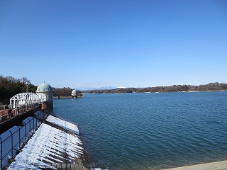 雪の残る多摩湖、やっぱり堤防は寒かったです・・・