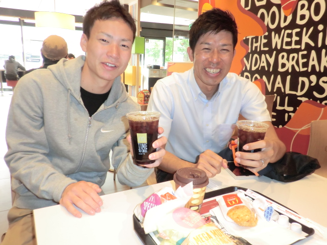 村越支配人、村山さんと 朝マックしました