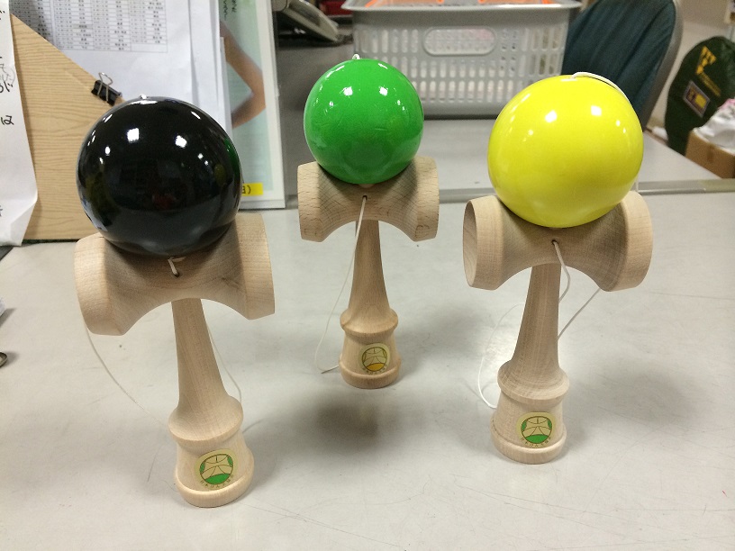 けん玉のワークショップです ※グリーンのは村越支配人のmyけん玉です