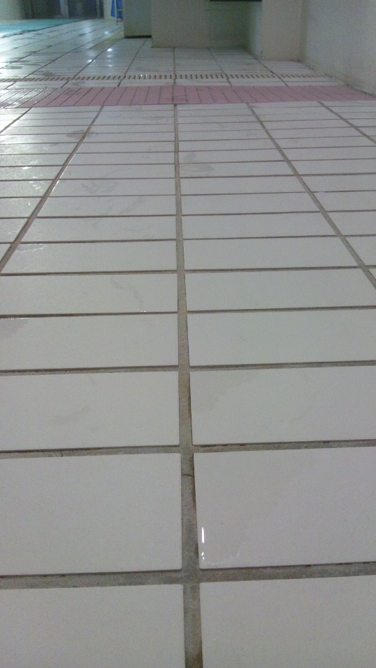 今回は、床が滑らないように、清掃および加工を実施しました。→