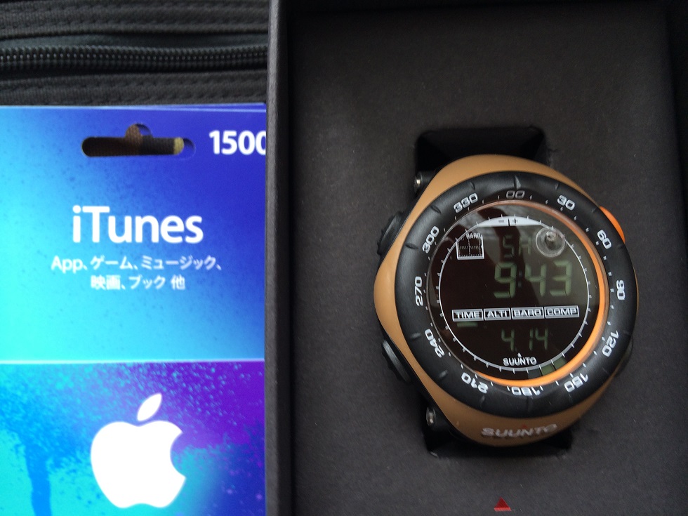 大物系、SUUNTOの腕時計とiTunesカード※腕時計は撮影の為にBOX開けさせていただきました
