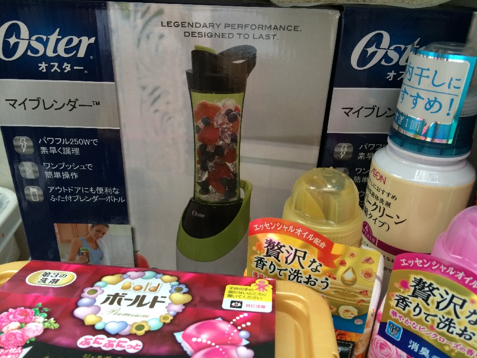 後ろに見えるのは、スムージーミキサーです、ピンクもあるので2台ですオリジナルのタオルも