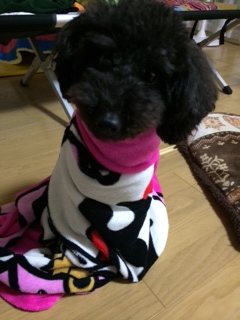 毛布に包まりました