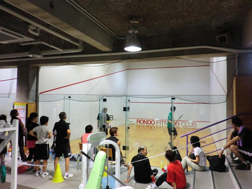 試合風景、ちなみにコート内にいる緑色のシャツを着ているのが私です。