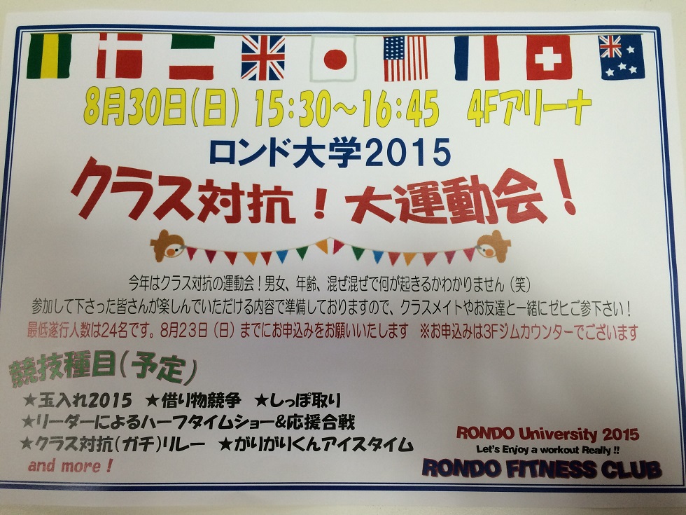 運動会のインフォメーションです。2期目のワークショップは7月29日(水)にアップいたしますのでジャンジャンご参加下さいね