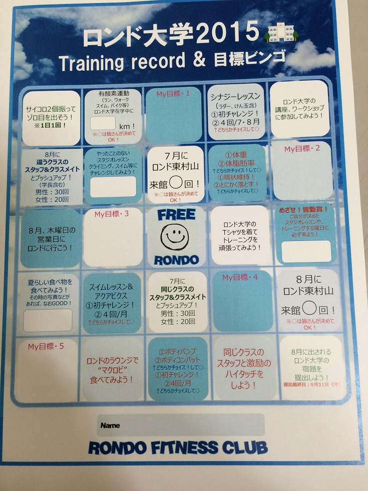 ビンゴカード(今回はトレーニングファイルの表紙にしました)